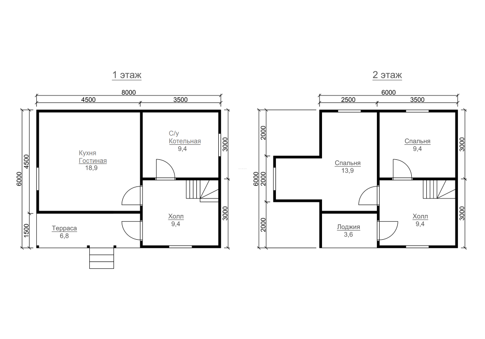 | Под усадку (без отделки) | 6х8 | Cруб дома 190х140 мм | 1421600 | Заказать |
