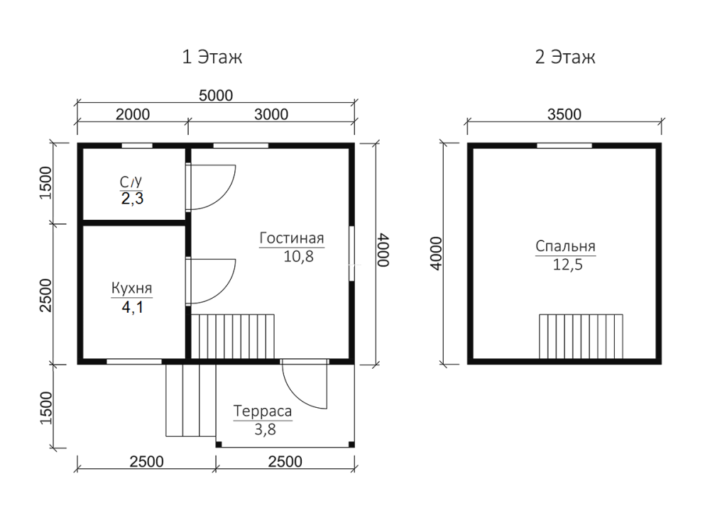 Проект дома 3 с общей площадью 31 кв.м. и размером фундамента 5х4 м.. Внутри этого полутораэтажного уютного дома расположилась всё, что нужно для комфортного проживания или загородного отдыха.