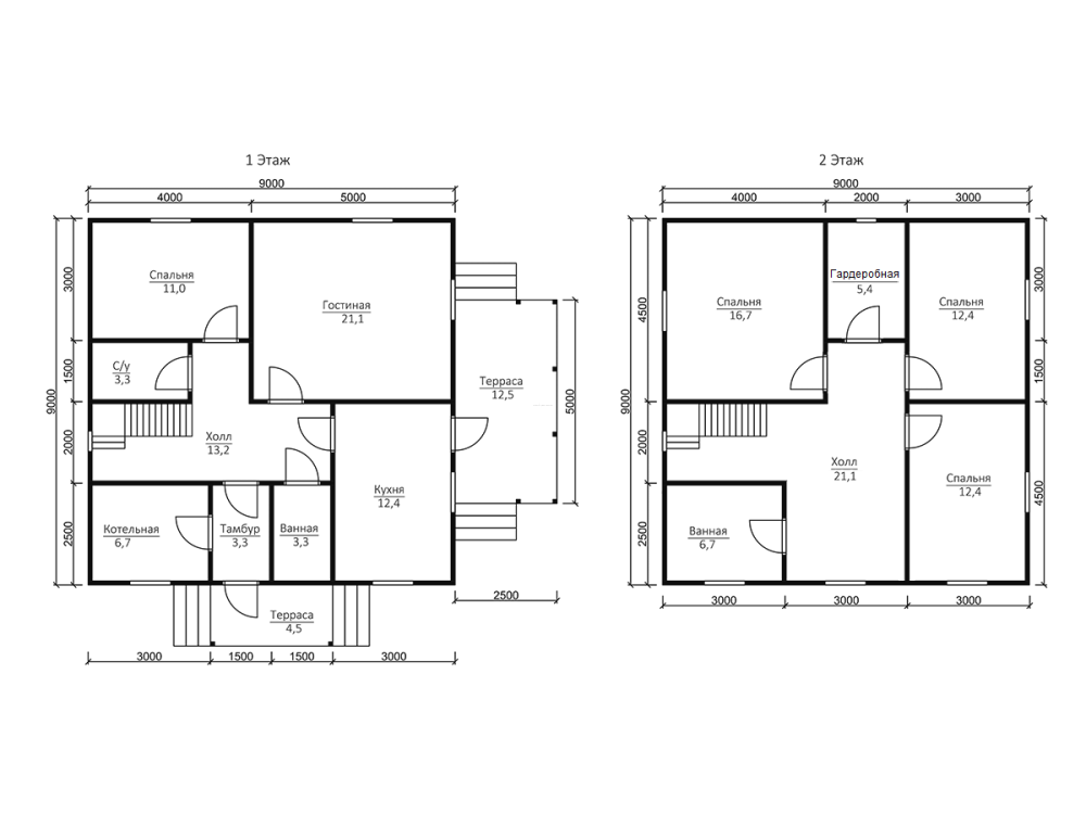 Самые популярные размеры: мини - до 50 кв. М (как правило, 1 этажные); компактные - от 70 до 100 квадратных метров (обычно двухэтажные); большие - от 150 кв. М и свыше.